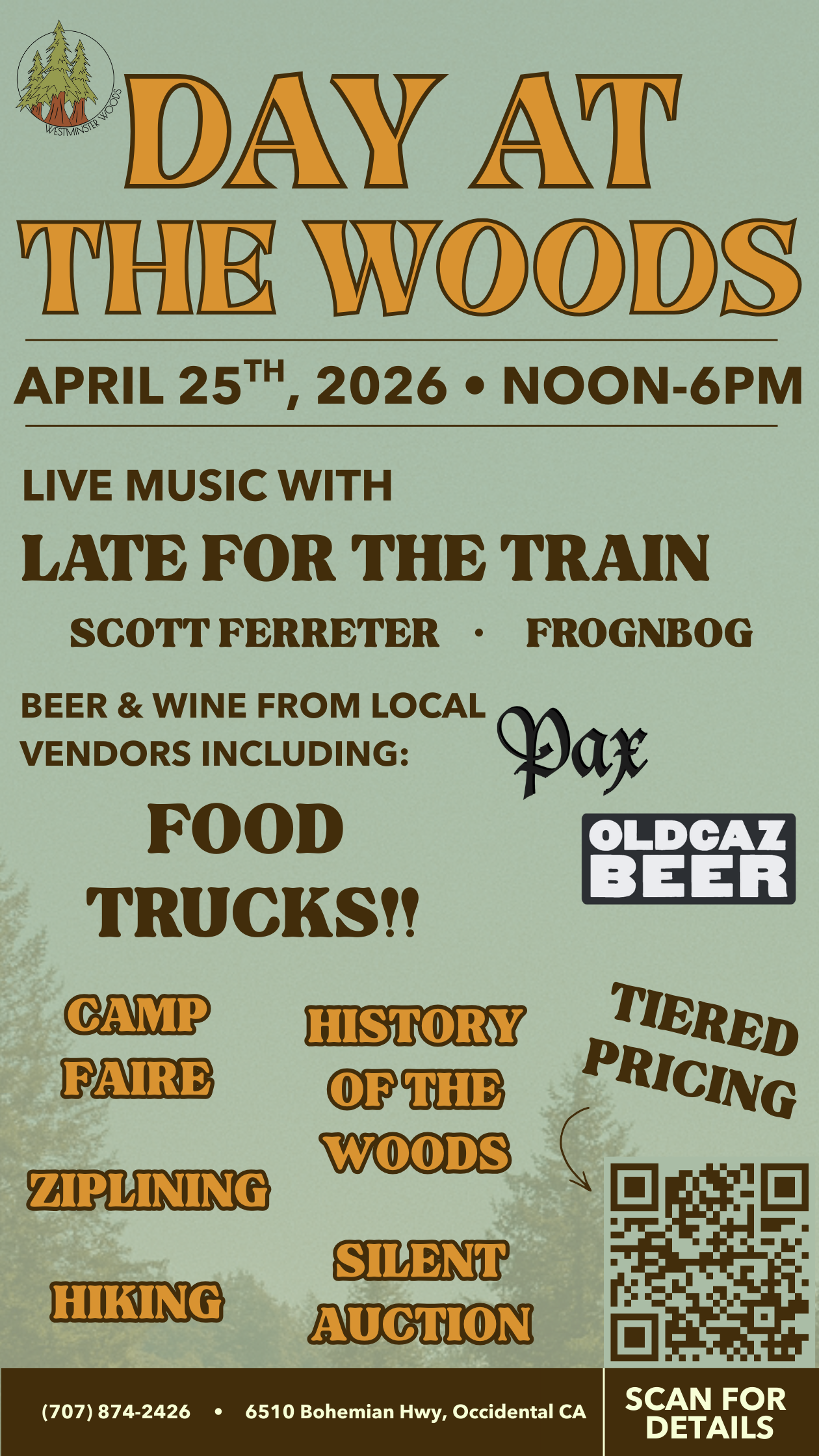 All proceeds from this event help sustain Westminster Woods’ mission to provide a sanctuary for spiritual reflection and growth, to foster character and community, and to deepen care for the natural world. Through experiential outdoor education, we encourage stewardship of our environment, support the development of science literacy, and strengthen relationships with one another, with Christ, and with our diverse communities.